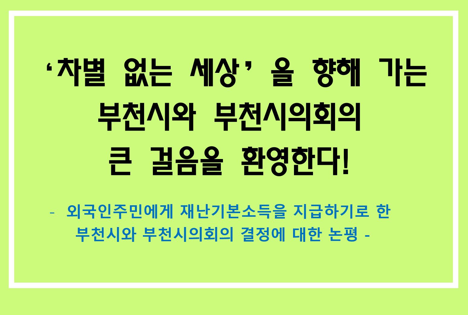 -외국인주민에게 재난기본소득을 지급하기로 한 부천시와 부천시의회의 결정에 부쳐-