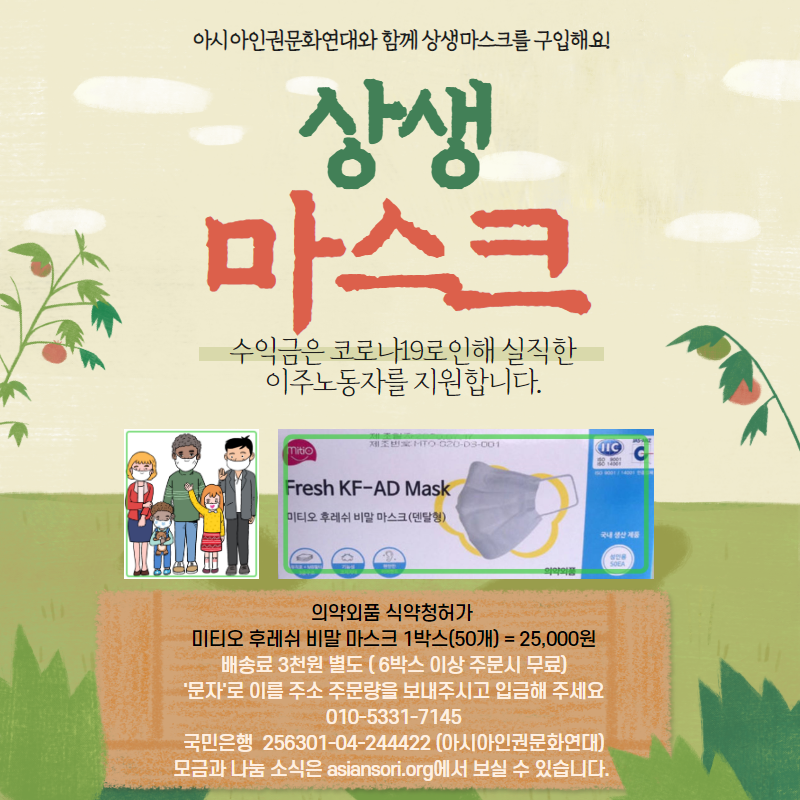 어차피 사야하는 마스크라면 아시아인권문화연대에서 구입하세요^^