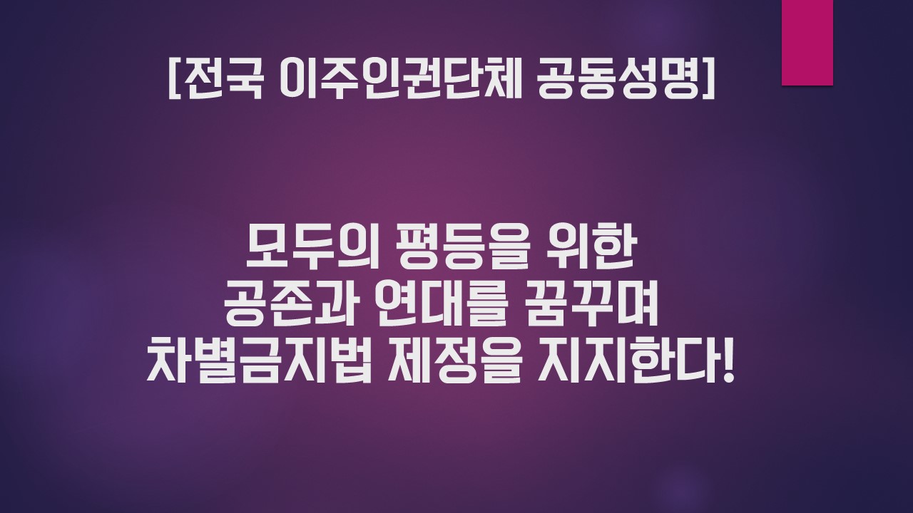오랜 기다림 끝에 다시 발의된 포괄적 차별금지법, 이제는 반드시 제정되어야 한다. 이주인권단체는 차별금지법 제정을 향한 발걸음을 환영하며, 함께 연대할 것을 다짐한다.