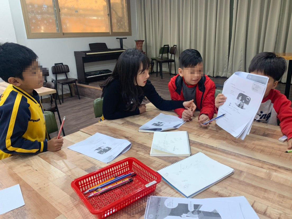 먼저 한국어 정도에 맞게 콩콩샘들과 모둠별로 수업을 하고요.