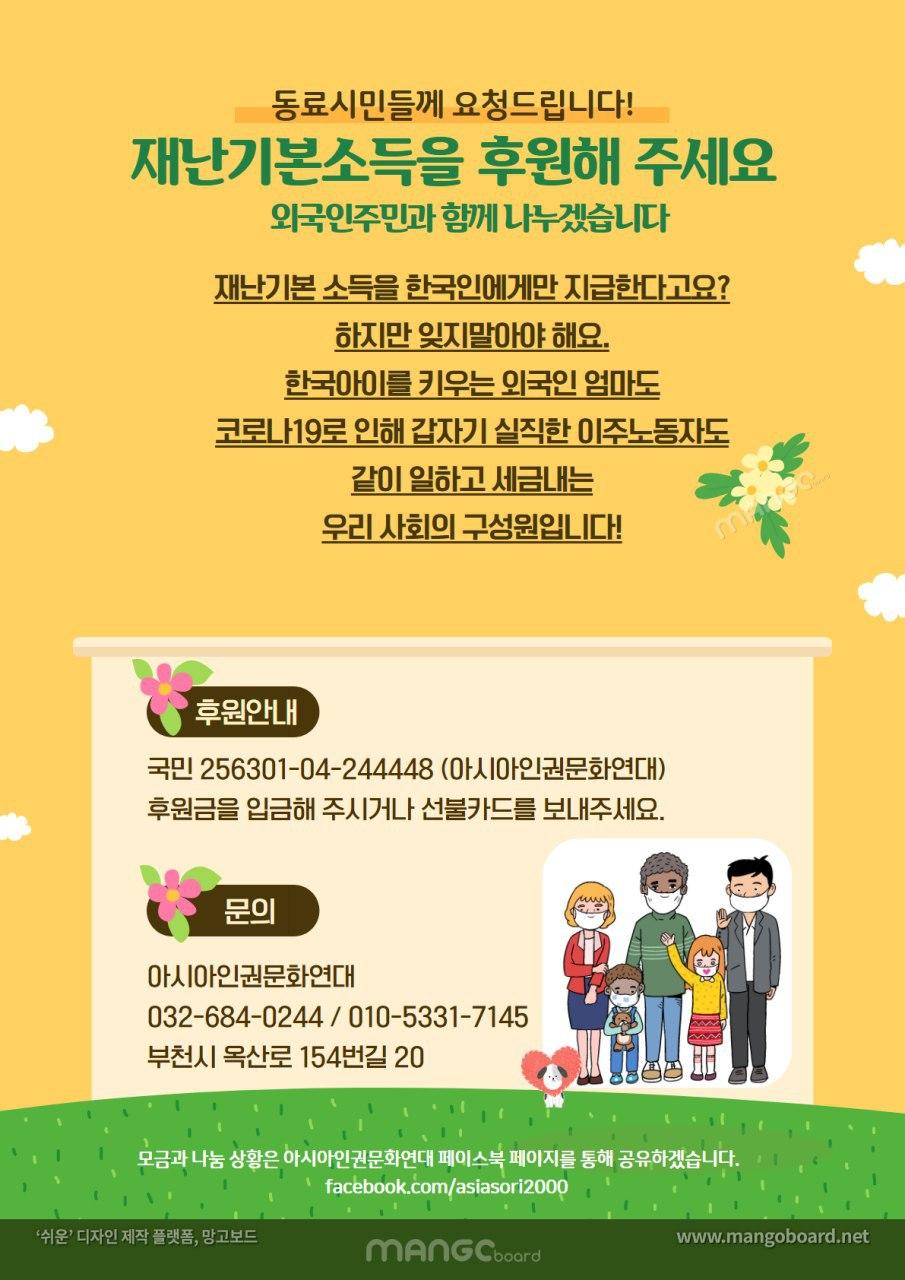 동료시민들께 요청합니다! 정부가 배제한 외국인주민에게 재난기본소득을 나누어주세요!